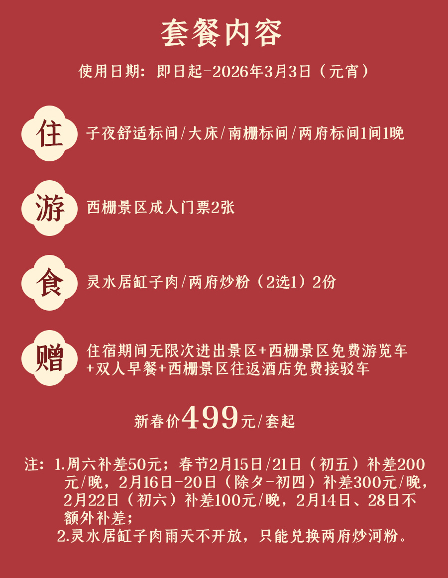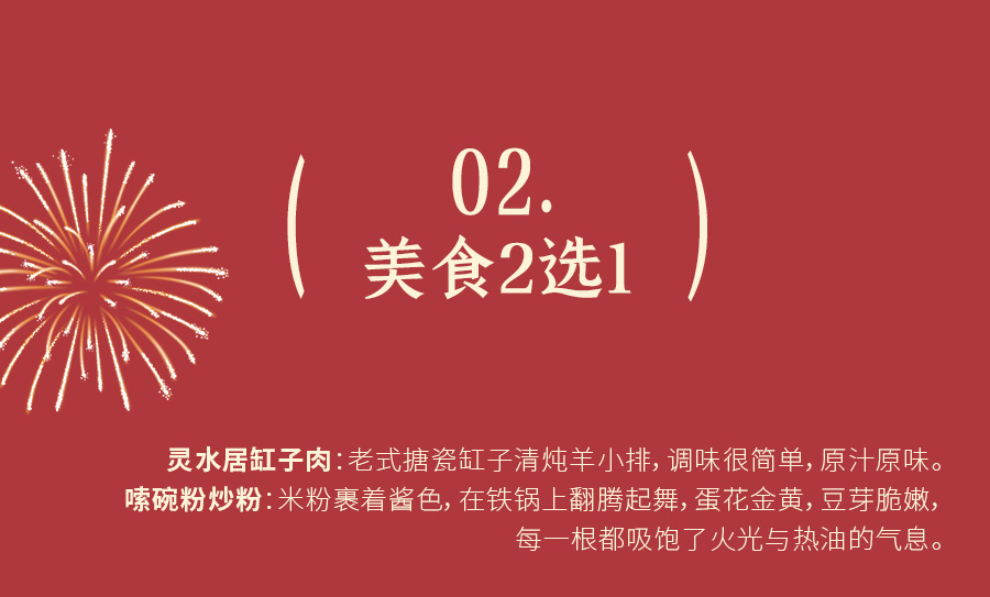注:灵水居缸子肉雨天不开放,只能兑换两府炒河粉;