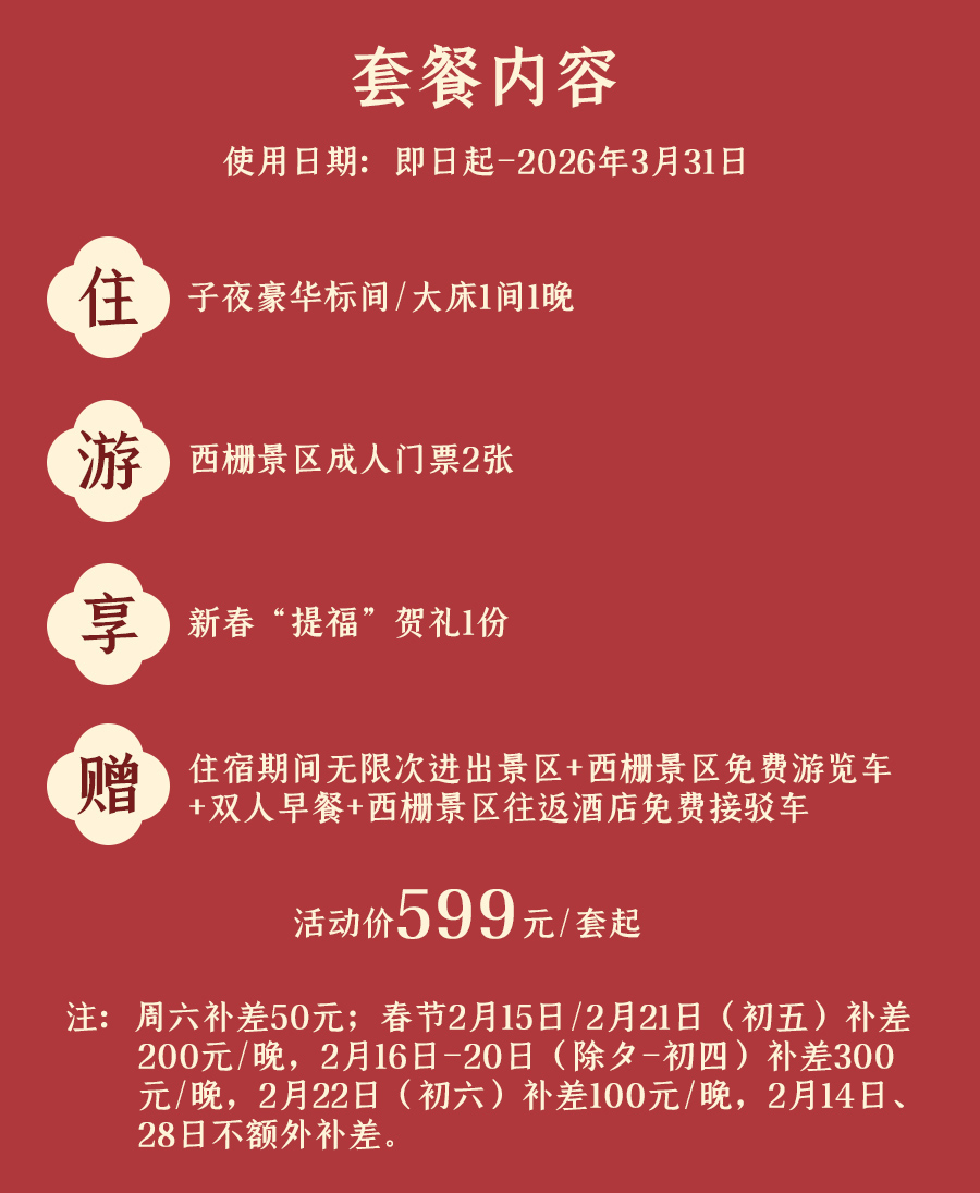 套餐外的体验内容需现场补差;