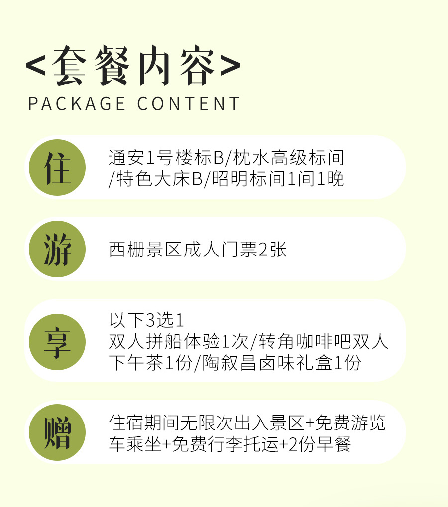 住宿期间如需出入西栅景区可在入住酒店前台办理人脸识别,人脸识别退房当天中午12:00前有效,退房当日12:00后离开景区再次进入需重新购买景区门票;