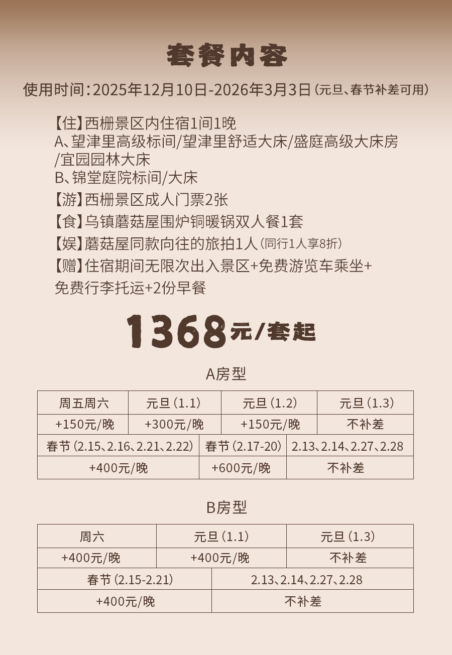 套餐外的体验内容需现场补差;
