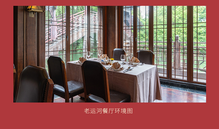 老运河码头餐厅营业时间:11:00-13:30,17:00-20:00;菜单: 热菜:豉油深海南美虾、一锅二吃、莓干菜扣五花肉、乌村田园时令蔬;点心:笋尖鲜肉烧麦皇;时令水果盘;